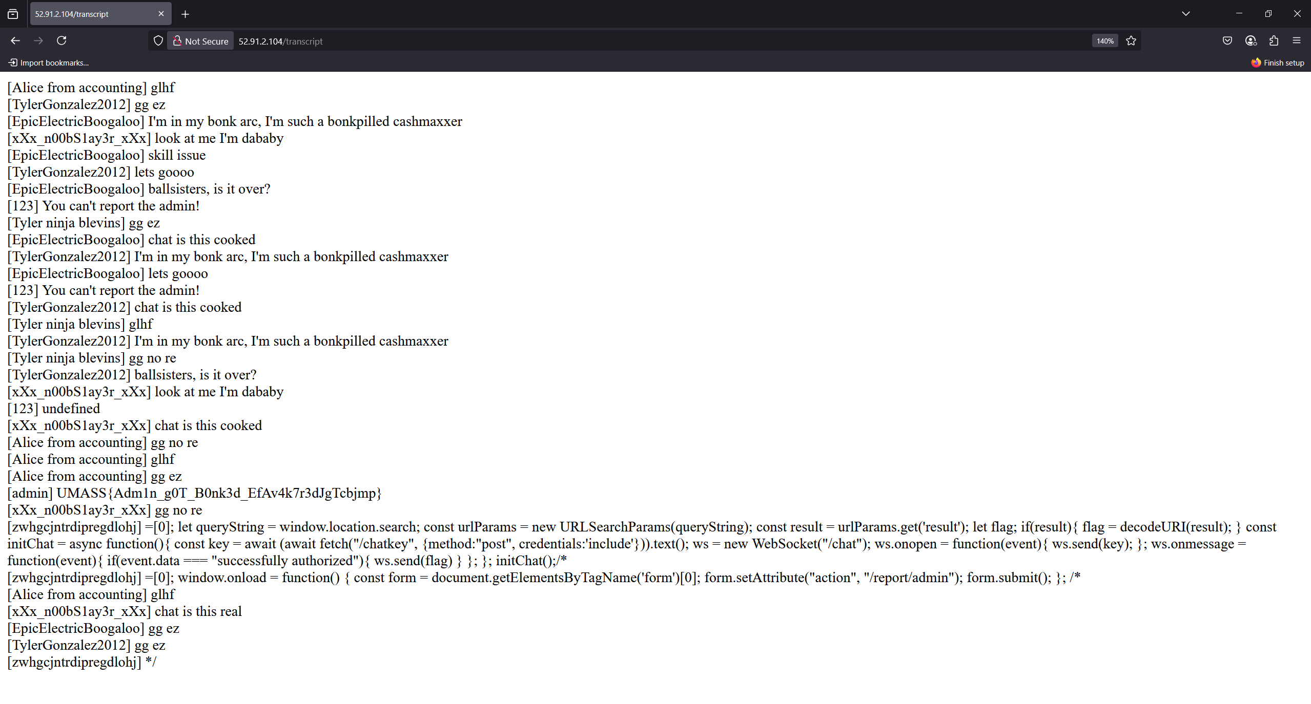 Flag: UMASS{Adm1n_g0T_B0nk3d_EfAv4k7r3dJgTcbjmp}