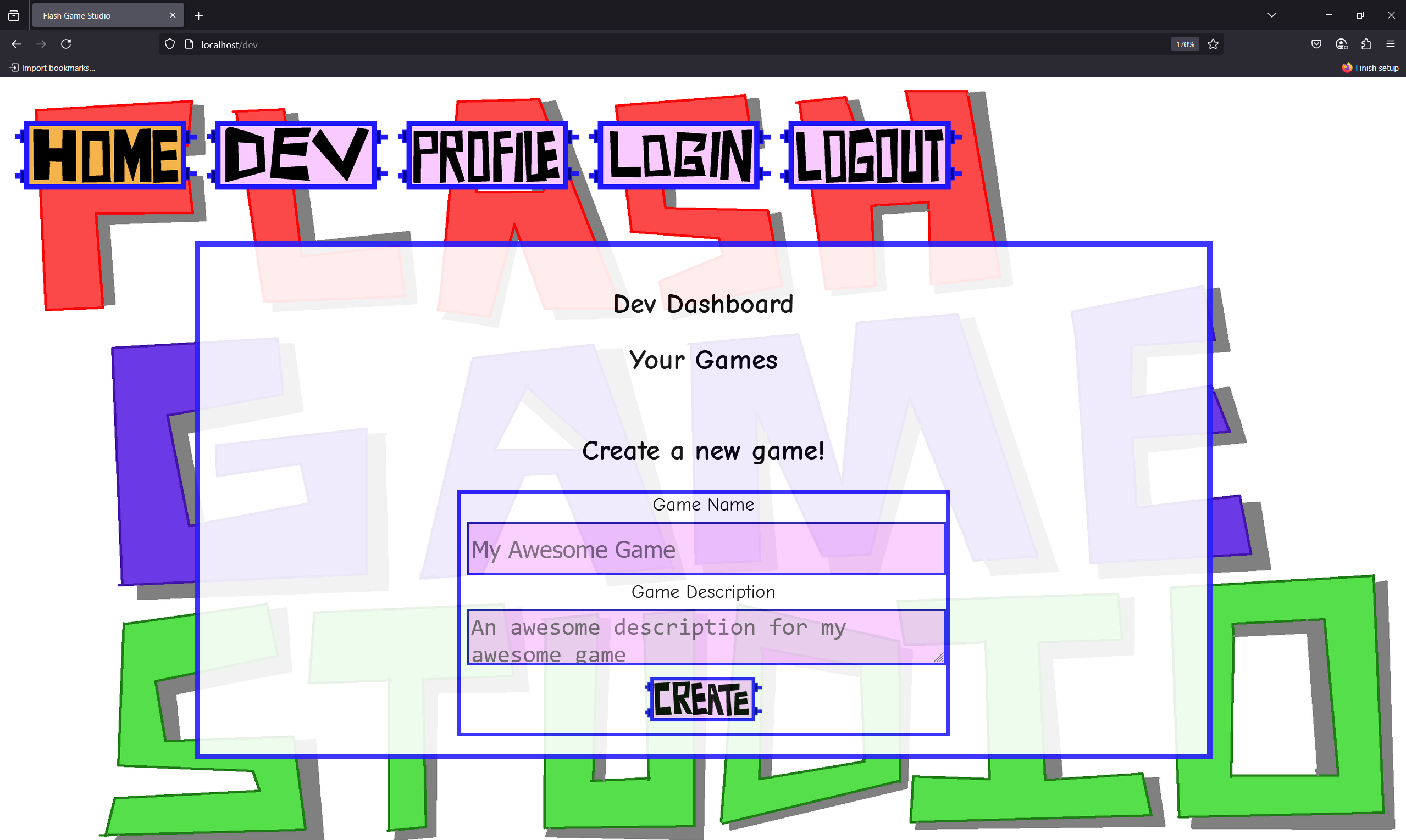bot.py, which means we are going to do things with xss or ssrf. I create an account, login and play around with the website’s functionality for a while. The/devendpoint is where we can create a game. But it is blocked. In order to have dev role, looks like we need to admit out user id:
